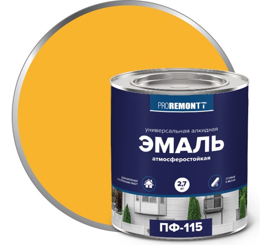 Эмаль PROREMONTT ПФ-115 желтая, 2.7 кг Лк-00004462 используется при проведении отделочных работ внутри и вне помещений.