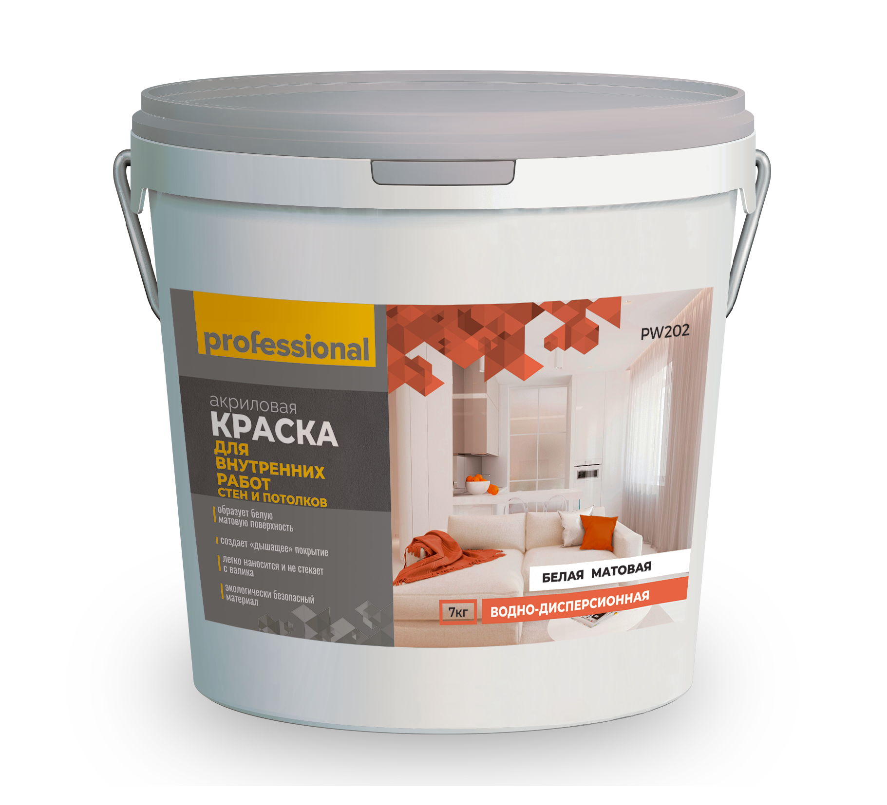 Краска для внутренних работ БЕЛАЯ РW202 ( 7кг) ТМ "Professional"