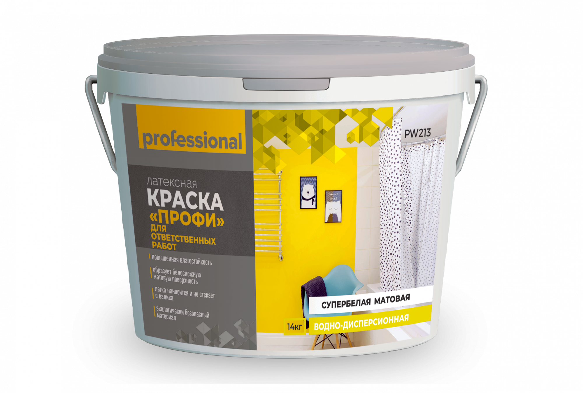 Краска ПРОФИ для ответственных работ внутри помещений СУПЕРБЕЛАЯ РW213 (14кг) ТМ "Professional"