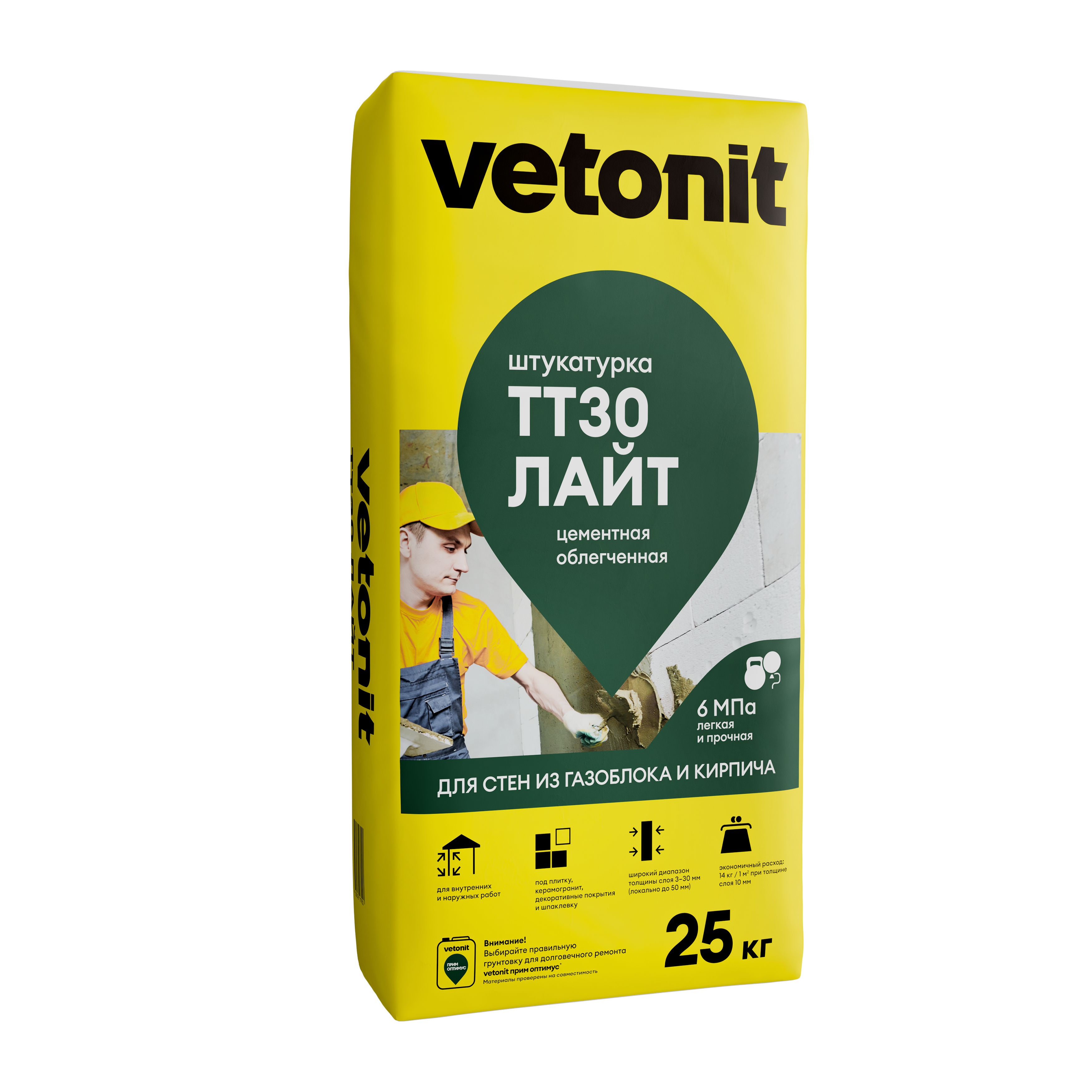 Vetonit® TT30 Лайт - облегченная цементная штукатурка для базового выравнивания стен и потолков в сухих, влажных и мокрых помещениях перед облицовкой плиткой и природным камнем (в том числе ванных комнат и подвалов), нанесением декоративной штукатурки и финишным шпаклеванием. Выравнивание наружных поверхностей зданий при проведении строительных и ремонтных работ фасадов. Идеальна для газобетона.