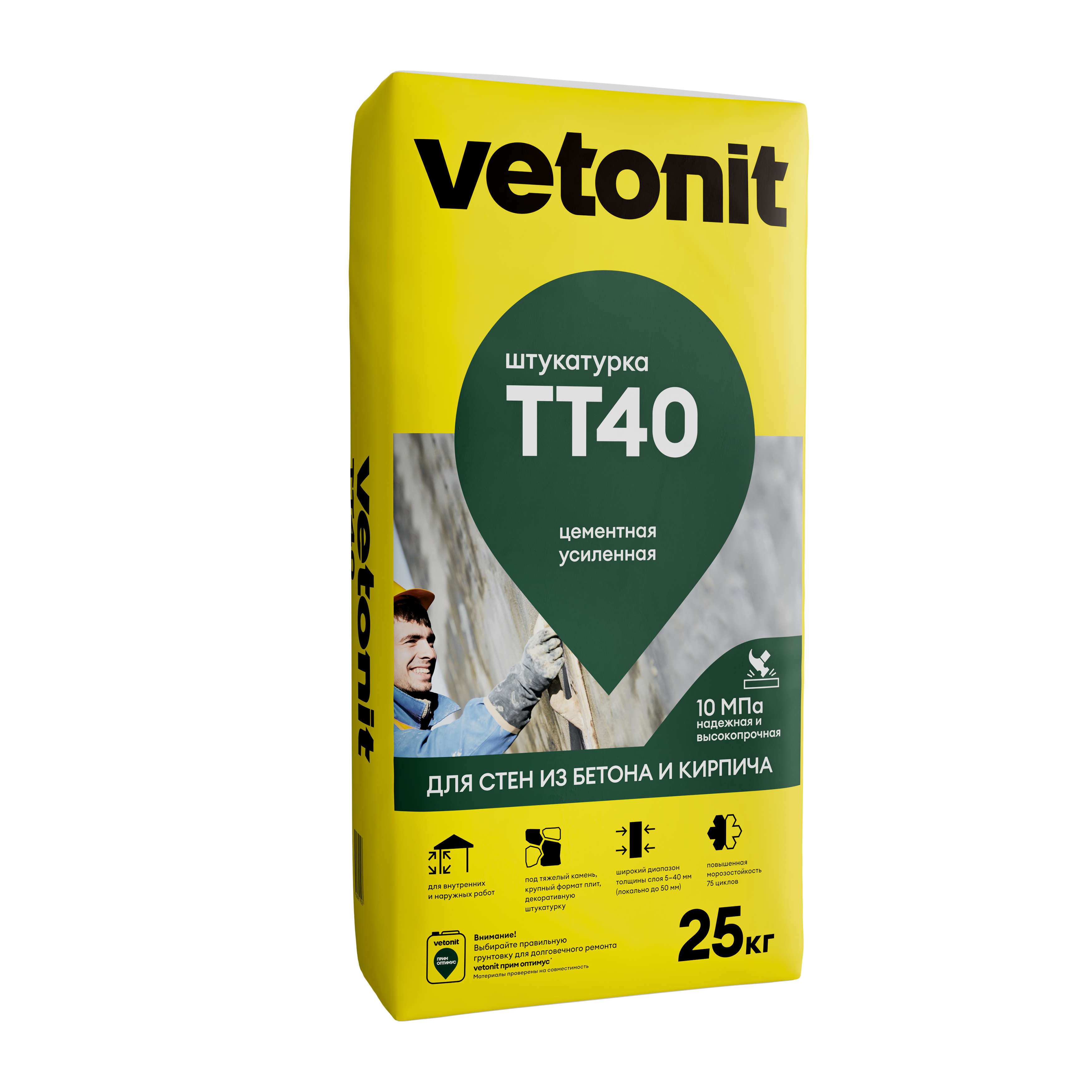 Vetonit® TT40 сухая штукатурка цементная универсальная, 25 кг