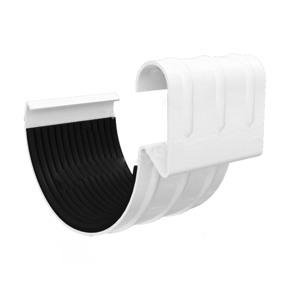 Металлическая водосточная система Соединитель желоба D125 (ПЛД-02-9010-0.6) изготовлена из оцинкованной стали. В качестве защитного барьера от влаги, ультрафиолета, механических повреждений применено покрытие Пластизол двустороннийКомпания «Металл Профиль» производит водосток Соединитель желоба D125 (ПЛД-02-9010-0.6) в оптимальной толщине 0.6 мм (включая защитно-декоративный слой и слой цинка). Такая система подходит как для частного домостроения, так и для индустриальных зданий. Она долговечна, экономична и легко монтируется.