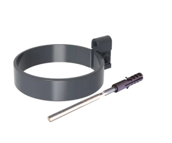 Хомут водосточной трубы изготовлен из композиции непластифицированного поливинилхлорида (ПВХ). Специальный состав ПВХ-композиции имеет высокую механическую прочность, морозостойкость и стойкость к ультрафиолету, что обеспечивает надежную защиту от выцветания и длительный срок службы изделия.