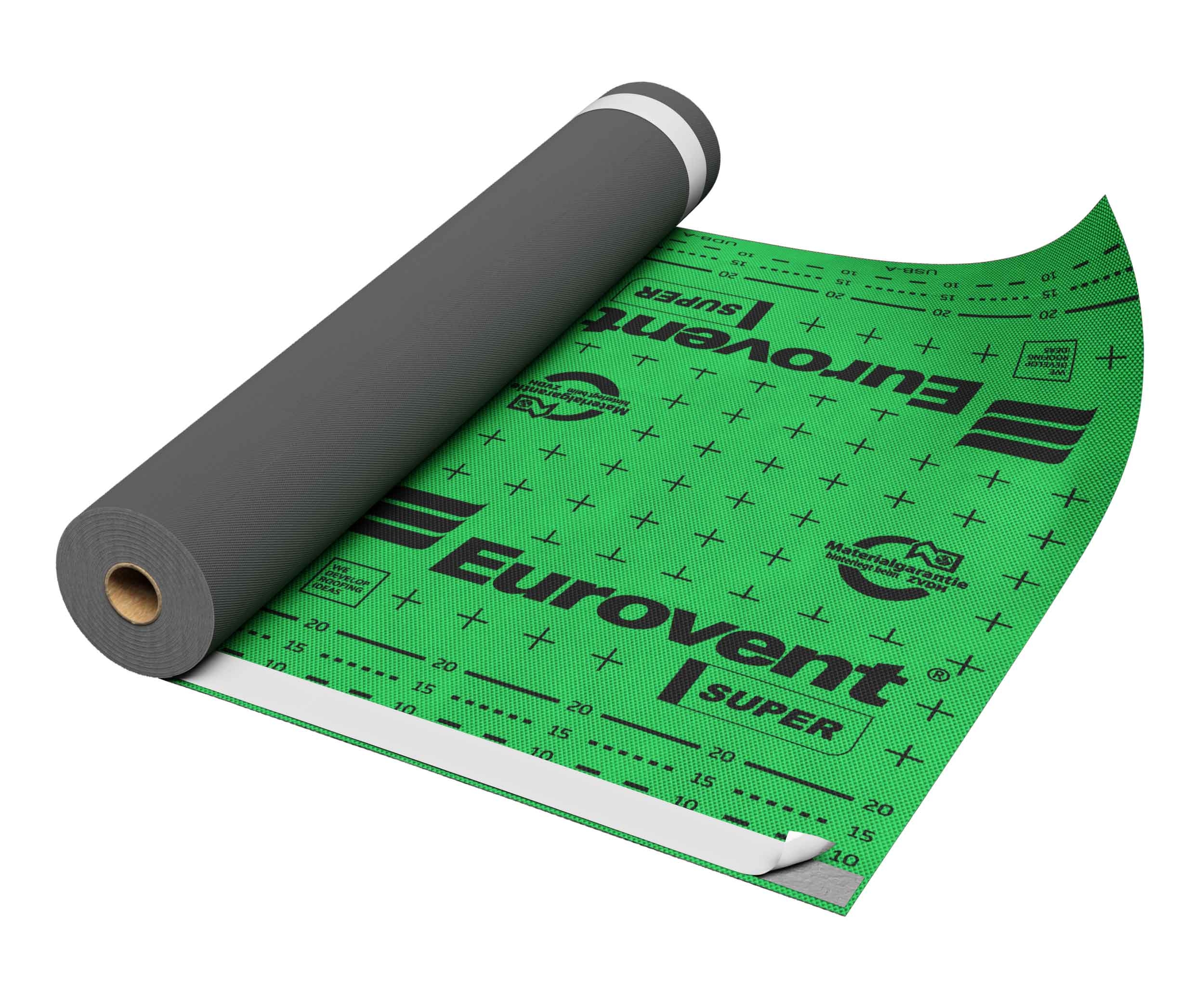Кровельная мембрана Eurovent® SUPER, трехслойная, высокопаропроницаемая, , применяется для скатных, изолированных и вентилируемых крыш, а также рекомендуется для крышc сплошной обрешетки. Имеет самое высокое в своем классе сопротивление К разрыву , поэтому эту мембрану выбирают самые требовательные кровельщики. Подходит для различных типов кровельных покрытий как бетонная черепица, керамическая черепица, металлическая черепица, алюминиевых листов, натурального шифера. Доступна с двумя самоклеящимися лентами - СИСТЕМА SK2.