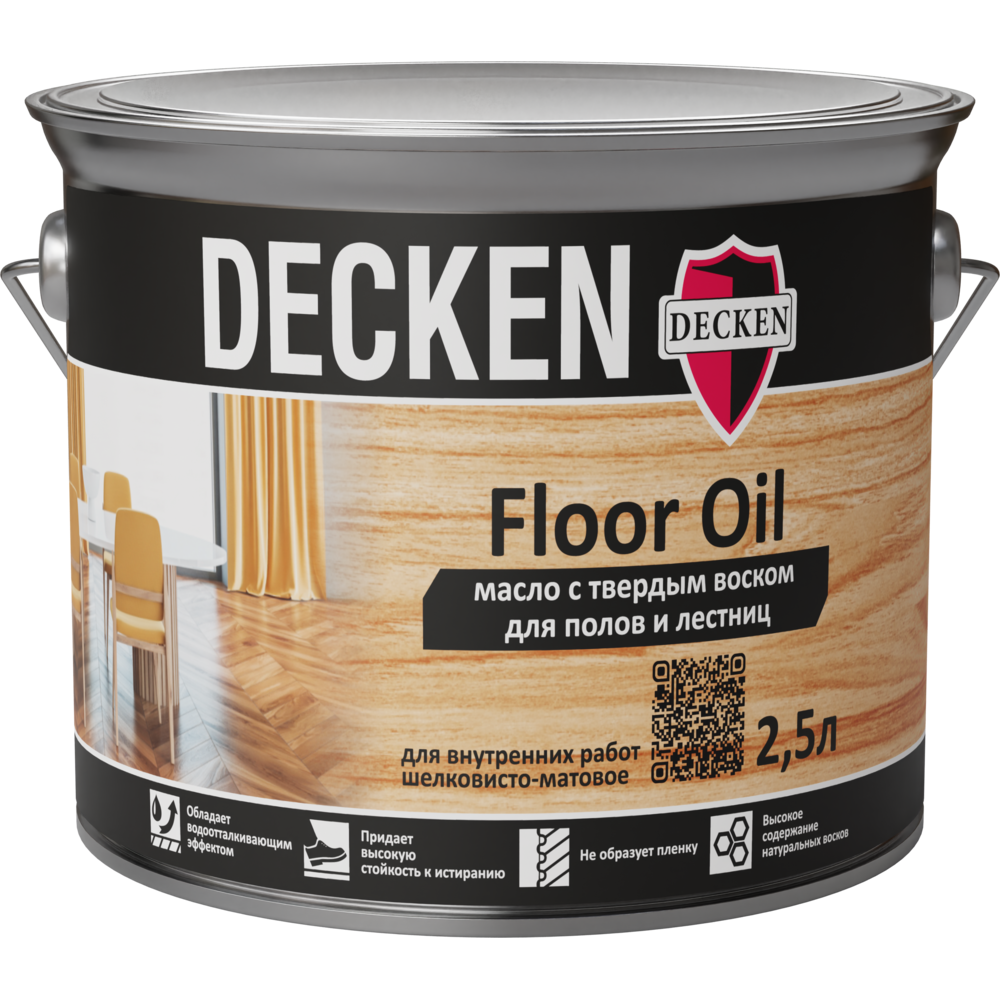 Масло с твердым воском для полов DECKEN Floor Oil – цветное прозрачное шелковисто-матовое покрытие для внутренних работ на основе натуральных растительных масел и восков.