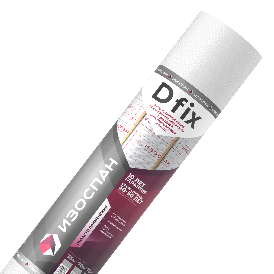 Изоспан D fix – двухслойный материал на основе высокопрочного полипропиленового тканого полотна. На полотно материала нанесены две клейкие ленты для герметизации нахлёстов. Благодаря повышенной прочности материал способен выдерживать значительные механические нагрузки в процессе монтажа и эксплуатации.