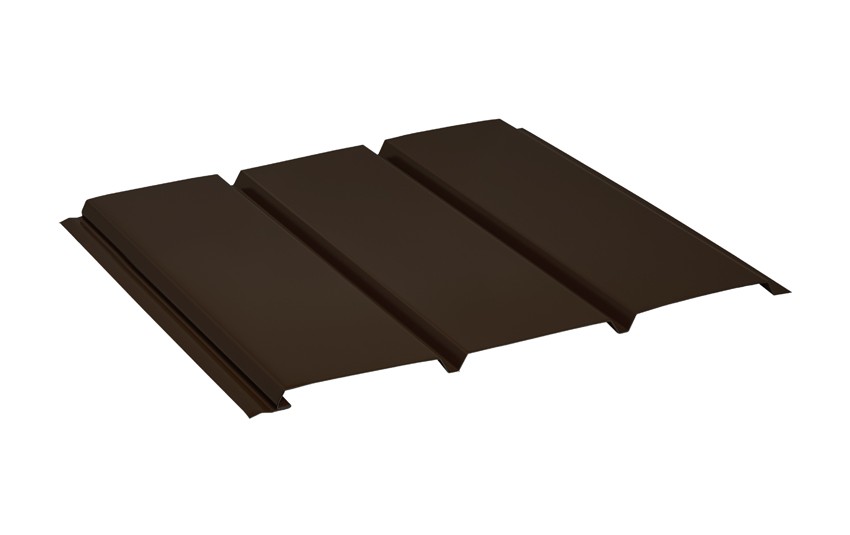 Софит без перфорации предназначен для подшивки карнизного и фронтонного свесов. Является и декоративным элементом, т.к. скрывает нижнюю часть кровли и придает ей аккуратный и законченный вид
