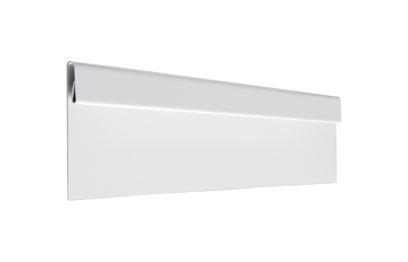 Финишная планка крепится к лобовой доске с помощью саморезов. В паз финишной планки устанавливается L-профиль, либо J-фаска.