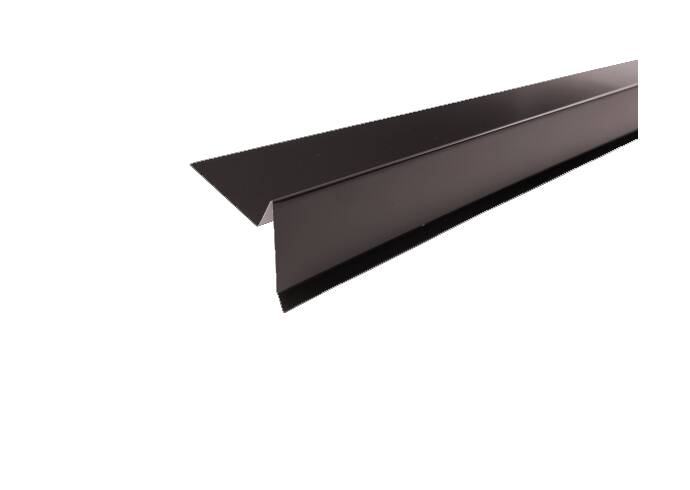 Торцевая планка для гибкой черепицы крепится на каждый торец крыши и служит для защиты обрешетки от влаги. Вторым её назначением является защита от срыва гибкой черепицы с кровли при сильных порывах ветра. Ветровая планка имеет стандартный размер 85х25х125х2000мм, но по желанию заказчика может быть изготовлена и в других размерах.