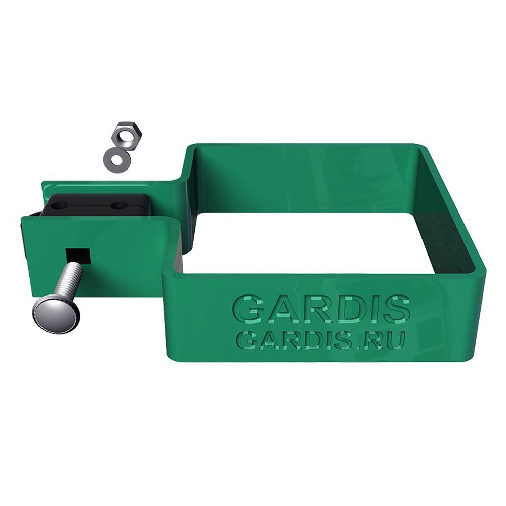 Комплектов хомутов концевых с логотипом GARDIS из оцинкованной стали толщиной 2мм для столба сечением 60х60, с комплектами метизов. Размер 105мм на 21мм. 2-х слойное дополнительное защитное покрытие ( конверсионное нанокерамическое покрытие на основе циркония и полиэфирное полимерное покрытие порошковой краской). 10-ти стадийная технология покрытия с применением технологии подготовки поверхности от Henkel.