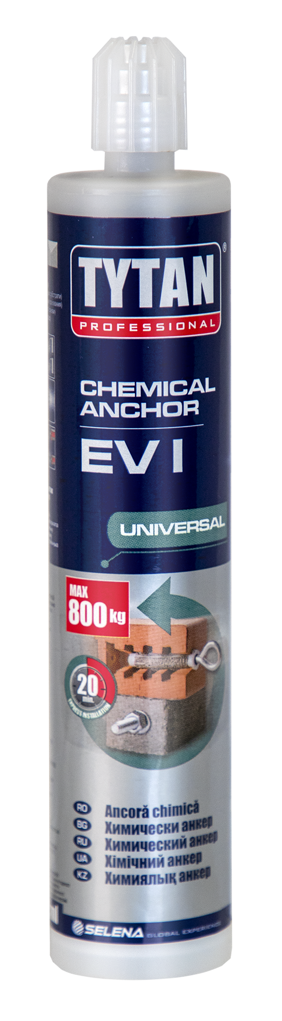 - TYTAN PROFESSIONAL EV-I предназначен для крепежа различных конструкций в твердых основаниях: бетоне, натуральном и искусственном камне, пустотелом кирпиче, газобетоне;