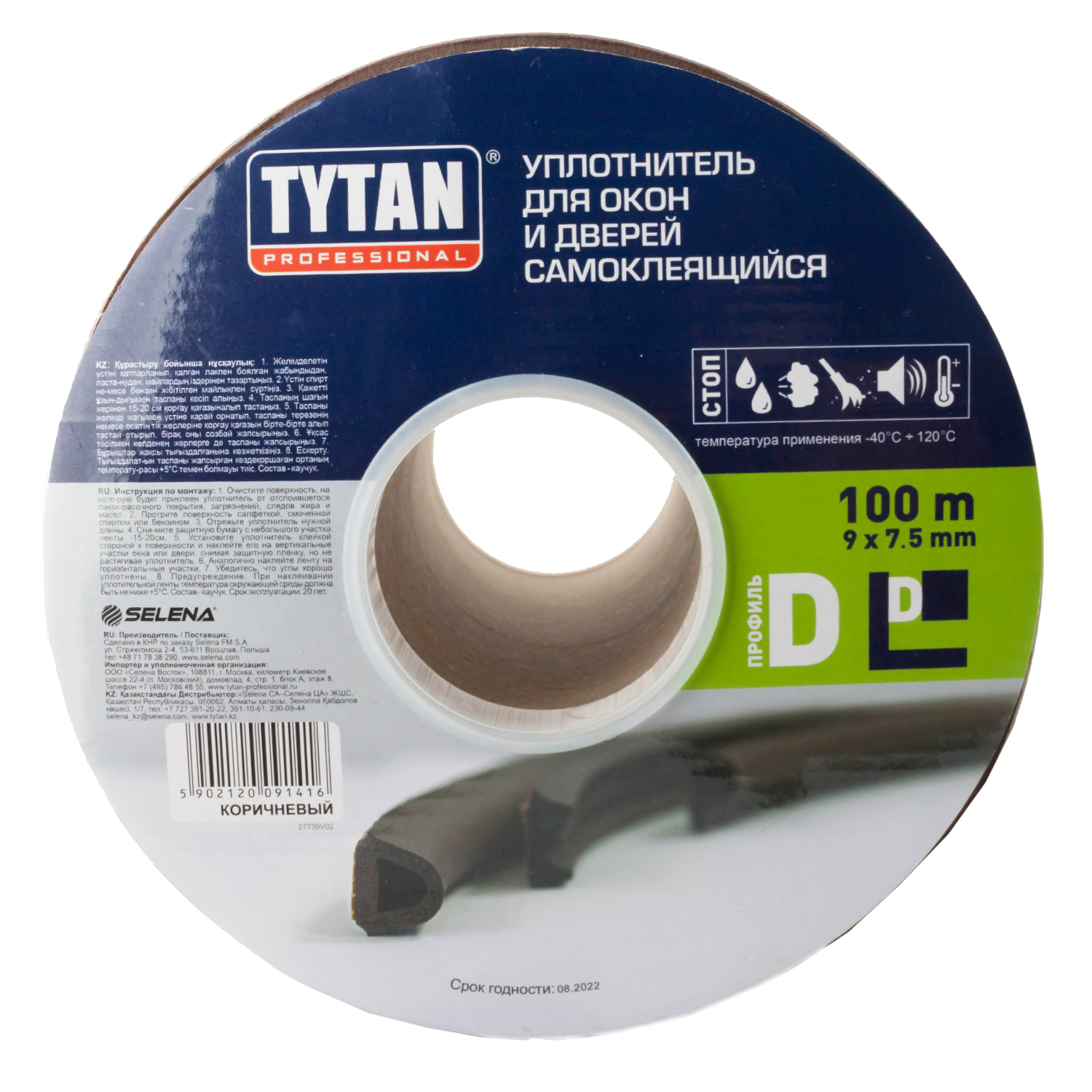 TYTAN Professional уплотнитель для окон D 100m х 9mm x 7.5 mm черный