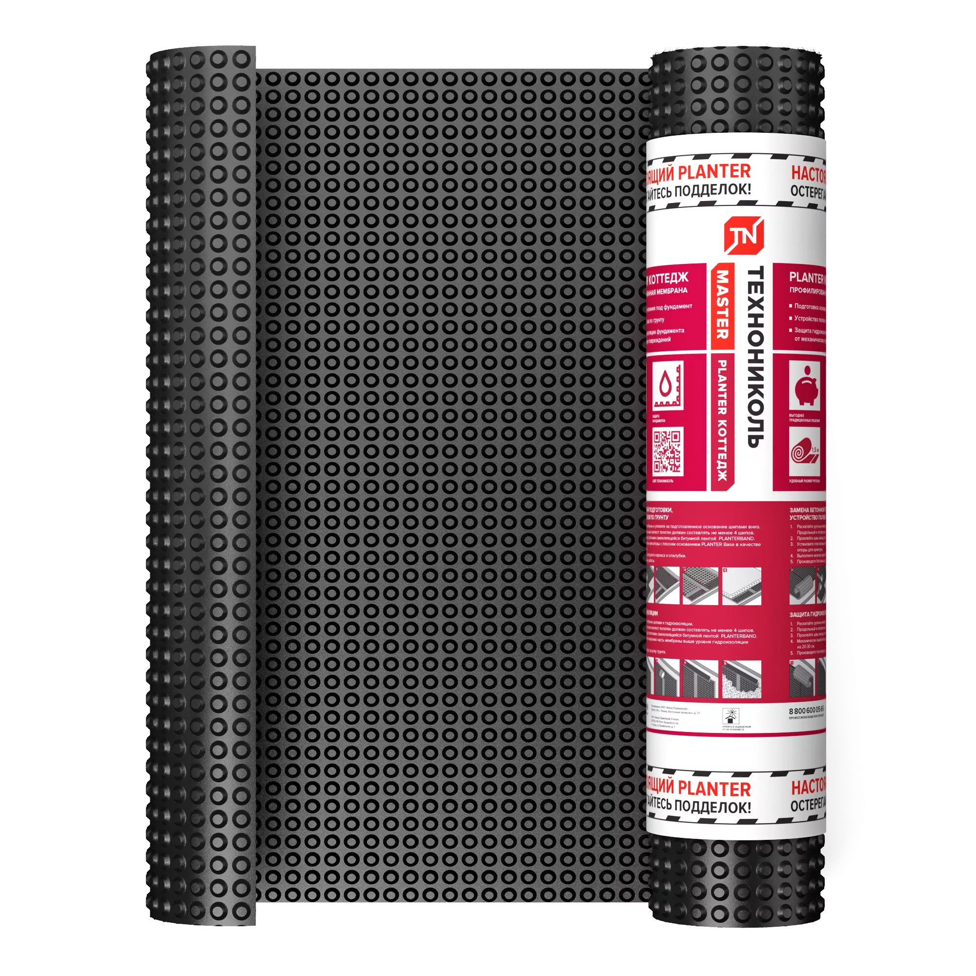 PLANTER Коттедж – это полимерные профилированные мембраны, применяемые в индивидуальном жилищном строительстве в качестве защитного материала. Мембраны изготавливают путём формирования в единое полотно сырьевой массы из полиэтилена высокой плотности (HDPE). Вся площадь лицевой поверхности мембран выполнена в виде выступов высотой 8,5 мм.