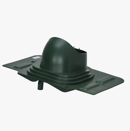 Проходной элемент служит основанием для монтажа вентиляционного выхода. Применяется на кровлях из металлочерепицы или на других типах покрытия скатных кровель с любым типом профиля с высотой до 70 мм (в том числе и натуральная черепица при использовании сверла по стеклу и керамике, и саморезов для кирпича) для установки вентиляционных труб. В комплекте имеется резиновый уплотнитель (мастер флеш), который крепится непосредственно к кровле и обеспечивает герметичность соединения. Изготовлен из качественного полипропилена, лёгкий. Материал не подвержен коррозии.