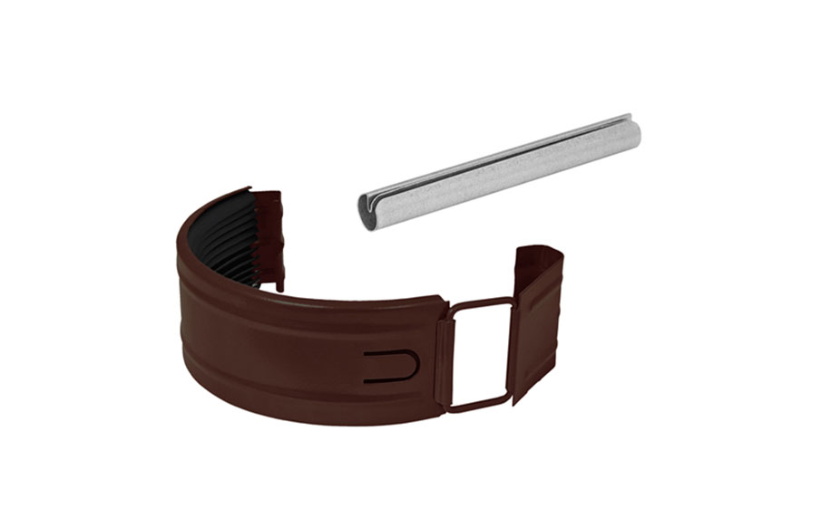 Соединитель желоба в комплекте предназначен для последовательного соединения двух желобов, либо желоба и угла (внешнего или внутреннего). Предотвращает протекание воды в местах соединений и является компенсатором линейного расширения металла.