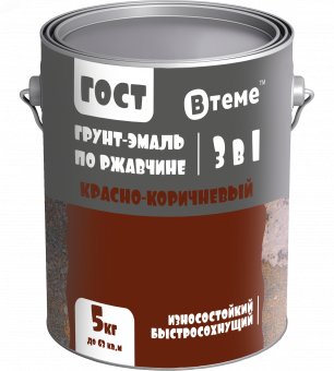 Грунт-эмаль "3 в 1" по ржавчине ГОСТ красно-коричневый RAL8004 (5кг) ТМ "ВТеме"