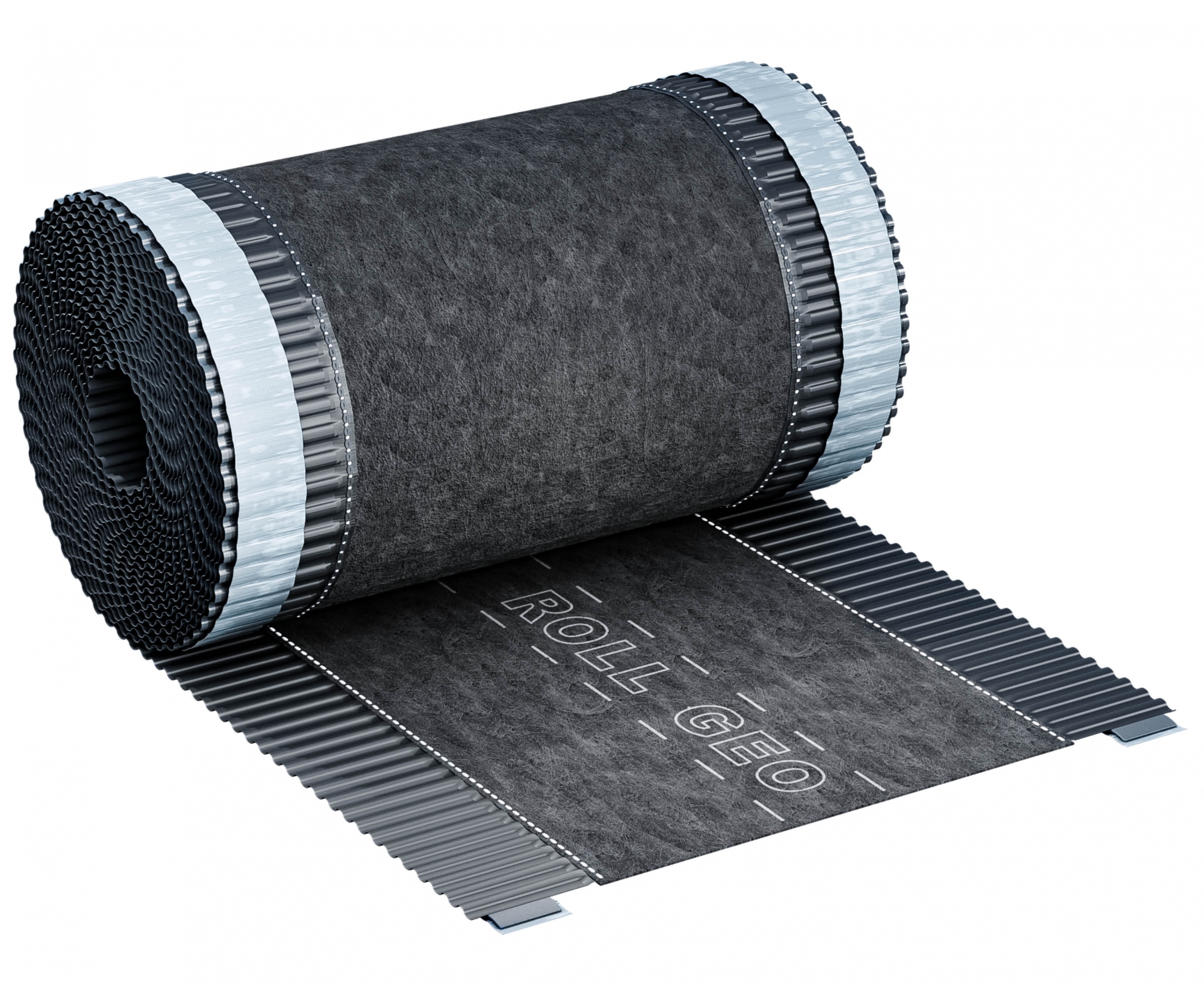 Коньковая лента Eurovent® ROLL GEO, oднослойная коньковая лента для горизонтальных и косых коньков. Изготовлена из профилированного алюминиевого листа, геотекстили и бутиловой ленты. Дополнительным укреплением соединения алюминевого листа и геоткани является шитье специальной нитью.