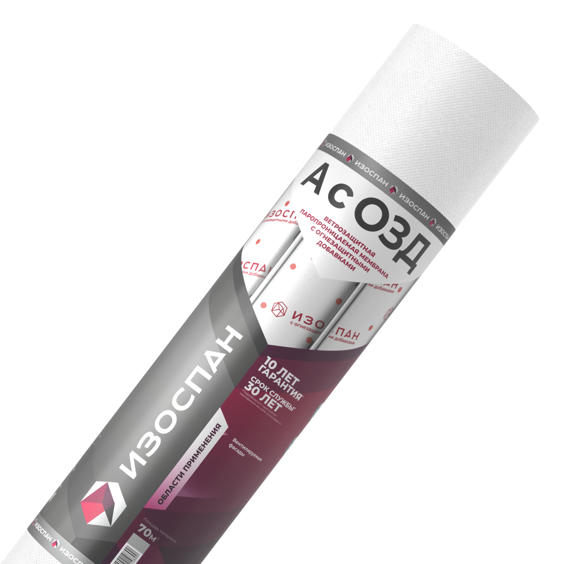 Изоспан А с огнезащитными добавками (ОЗД) – паропроницаемая мембрана, применяется для защиты утеплителя и внутренних элементов вентилируемых фасадов от ветра, атмосферной влаги, пороши, а также обеспечивает выведение водяных паров из утеплителя в зданиях всех типов.